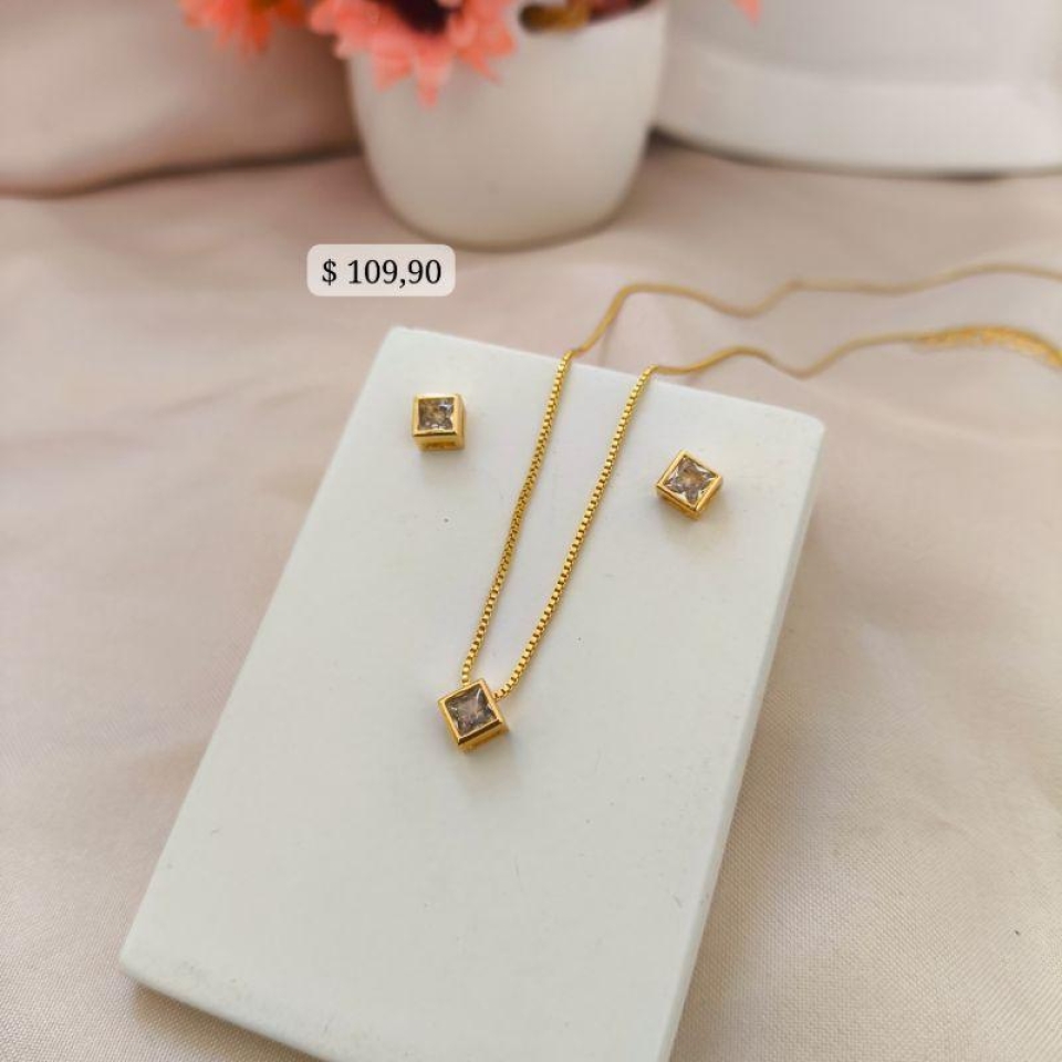 CONJUNTO COM PEDRA RETANGULAR CRAVEJADO EM...